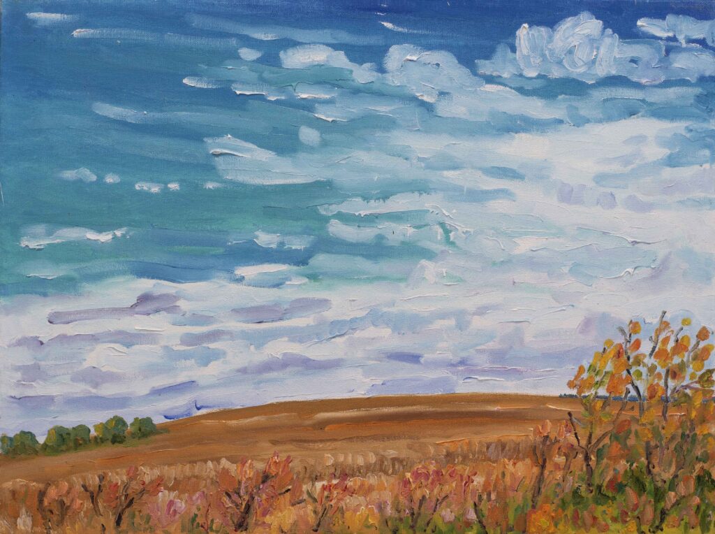 No different from a thousand other rural roadways in north-central Alberta, this stretch of Range Road leads north from the small town of Onoway, about 40 km west and north of Edmonton. The 18×24 inch oil-on-canvas piece was one of my first oil paintings.